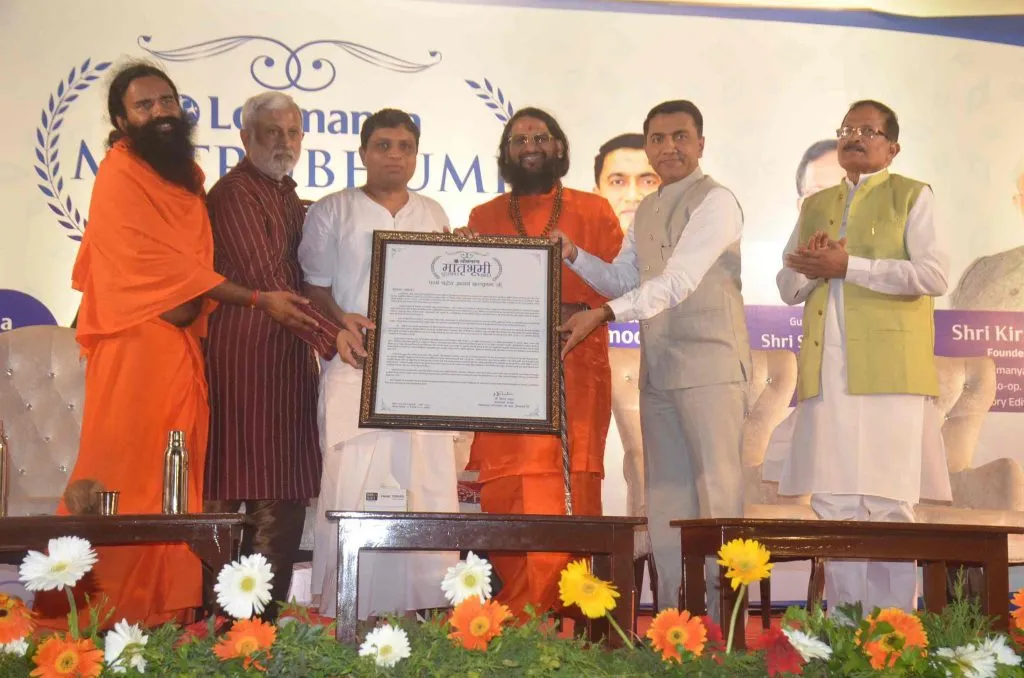 लोकमान्य मल्टिपर्पज को-ऑप. सोसायटी लि. तर्फे दिल्या जाणाऱ्या राष्ट्रीय पातळीवरील प्रतिष्ठेच्या ’लोकमान्य मातृभूमी पुरस्कार 2023’ च्या वितरण सोहळ्यात ते बोलत होते. व्यासपीठावर त्यावेळी आचार्य बाळकृष्ण महाराज, केंद्रीय पर्यटन राज्यमंत्री श्रीपाद नाईक, मुख्यमंत्री डॉ. प्रमोद सावंत आणि लोकमान्य मल्टिपर्पज को-ऑप. सोसायटी लि. चे संस्थापक अध्यक्ष किरण ठाकुर आदींची उपस्थिती होती. अन्य मान्यवरांमध्ये पर्यटनमंत्री रोहन खंवटे, भाजप प्रदेशाध्यक्ष सदानंद तानावडे, सौ. ब्राह्मीदेवी, कमलेश बांदेकर, सई ठाकूर बिजलानी, प्रितम बिजलानी, आदींची उपस्थिती होती.
