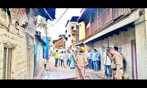 बोळमल बोळ-शहापूर परिसरातील एका घराला शनिवारी दुपारी आग लागली. आगीत संगणक, कागदपत्रे जळाली. अग्निशामक दलाच्या जवानांनी आग विझविली. मात्र रात्री पुन्हा धूर दिसून आल्यामुळे बंब मागविण्यात आला होता.