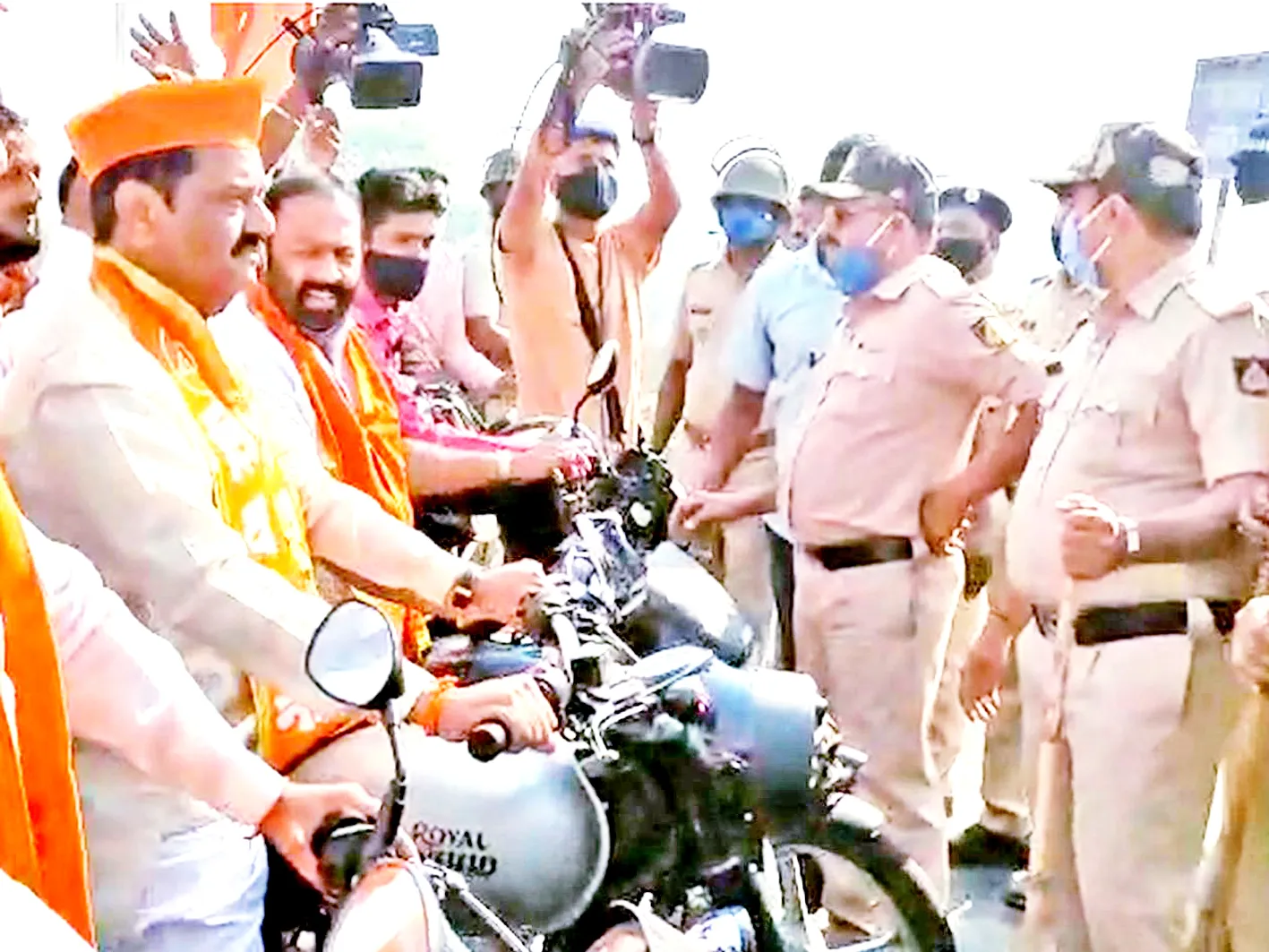 यावेळी कर्नाटक पोलिसांतर्फे मंडल पोलीस निरीक्षक आय. एस. गुरुनाथ, निपाणी ग्रामीण पोलीस ठाण्याचे फौजदार बी. एस. तळवार, साहाय्यक फौजदार एस. ए. टोलगी, पी. एम. घस्ती, अमर चंदनशिवे यांच्यासह पोलीस कर्मचारी उपस्थित होते. महाराष्ट्र पोलिसांतर्फे पोलीस निरीक्षक दत्तात्रय नाळे, एपीआय दीपक वाकचौरे, सुशांत चव्हाण, निखिल खर्चे, पीएसआय प्रितमकुमार पुजारी यांच्यासह मोठा पोलीस बंदोबस्त तैनात होता.