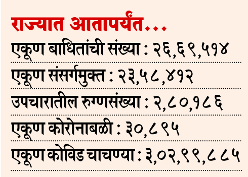 आरोग्य आणि कुटुंब कल्याण खात्याने प्रसिद्ध केलेल्या हेल्थ बुलेटिननुसार राज्यात शुक्रवारी 1,50,610 कोविड चाचण्या करण्यात आल्या. त्यापैकी कोरोना पॉझिटिव्हीहीचा दर 10.66 टक्के इतका आहे. तर मृत्यूचा दर 2.26 टक्के इतका आहे. राज्यात मृत्यूचा दर वाढत असून नव्या बाधितांची नोंद कमी होत असतानाच मृतांचा आकडा मात्र, अधिक असल्याने आरोग्य खात्यासमोरील आव्हान कायम आहे. राज्यात सध्या सक्रिय रुग्णसंख्या 2,80,186 इतकी आहे.