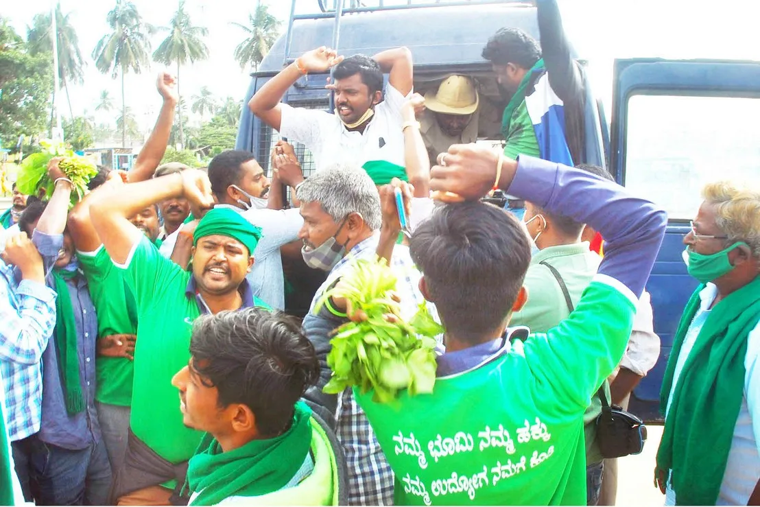शेतकऱयांच्या आंदोलनावेळी अनुचित घटना घडू नयेत यासाठी पोलिसांनी खबरदारी घेत अनेकांना ताब्यात घेतले. बेंगळूरच्या के. आर. पुरम येथे मोर्चामध्ये सहभागी झालेले राज्य रयत संघटनेचे अध्यक्ष कोडिहळ्ळी चंद्रशेखर, अखिल कर्नाटक रयत आणि व्यापारी संघटनेचे अध्यक्ष श्रीनिवास यांच्यासह शेकडो कार्यकर्त्यांना पोलिसांनी ताब्यात घेतले.