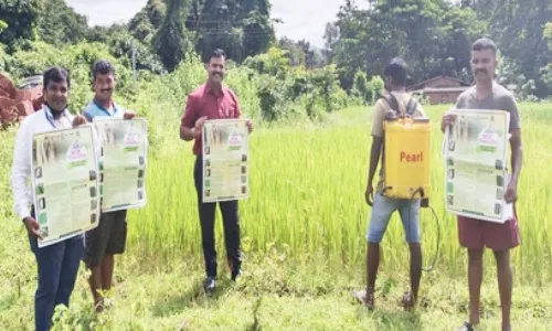 यावेळी तालुका कृषी अधिकारी रूपाली पापडे यानी भात पिकावरील करपा रोगाच्या नियंत्रणासाठी कार्बेन्डॅझिम ५० टक्के प्रवाही १० ग्रॅम १० ली.पाण्यातून तर निळे भुंगेरे रोगासाठी ५ टक्के प्रवाही लॅम्बडा सायहॅलोथ्रिन ६.२५ मिली १० ली. पाण्यातून फवारणी करण्याबाबत मार्गदर्शन केले. मंडळ कृषी अधिकारी प्रकाश घाडगे यांनी भात पिकावरील कीड व रोग प्रतिबंधात्मक फवारणीबाबत प्रात्यक्षिकासह माहिती दिली. कृषी सहायक मिलिंद निकम यांनी शेतक-यांनी फवारणीवेळी योग्य ती स्वतःची काळजी घेऊनच फवारणी करावी असे आवाहन केले.
