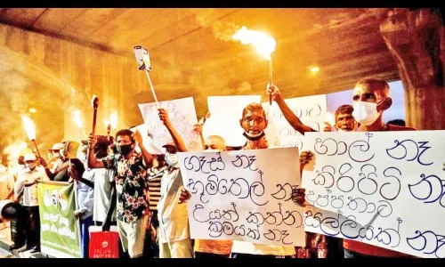 श्रीलंकेचे सारे पापग्रह एकत्र आले आहेत अशी स्थिती आहे. पेट्रोल-डिझेलचा एव्हढा तुटवडा आहे कि भारताने 40,000 टन इंधन त्वरेने पोहोचवून देखील ‘उंट के मुह में जीरा’ अशी स्थिती आहे. तेथील रुग्णालयात औषधांचा भयंकर तुटवडा असल्याने डॉक्टरमंडळी देखील निदर्शनात सामील झालेली आहेत. अतिशय गंभीर रुग्ण विभागात देखील प्राण वाचवण्यासाठी नितांत असलेली औषधे संपत आली आहेत. तर विद्यार्थी या निषेधात आघाडीवर आहेत. वकील मंडळी देखील एकजुटीने विरोधकांच्या मोहिमेत सामील झालेली आहेत. एवढय़ा चिमुकल्या देशात गेल्या पाच दिवसात 100 ठिकाणी निदर्शने झाली आहेत. स्वतःच अडचणीत असलेल्या नवी दिल्लीने जमेल तसे आर्थिक सहाय्य करून देखील कोलम्बोला अजून सारे काही हवेच आहे. आभाळच कोसळले आहे त्याला ठिगळ किती लावणार? अल्पसंख्यांक मुस्लिम आणि तामिळ समाजाच्या विरोधात राजकारण करून आणि बहुसंख्यांक बौद्ध समाजाला चेतवून 2019 साली सत्तेत आलेले सरकार एवढे अडचणीत आले आहे कि ‘विरोधी पक्षांना बरोबर घेऊन राष्ट्रीय सरकार स्थापण्याची त्यांची सूचना धुडकावून लावण्यात आलेली आहे. राष्ट्रपतींच्या हकालपट्टीची मागणी साऱया श्रीलंकेत होत आहे आणि ते लवकरच लष्करी शासन लावतील अशी भीती विरोधकांना वाटत आहे.