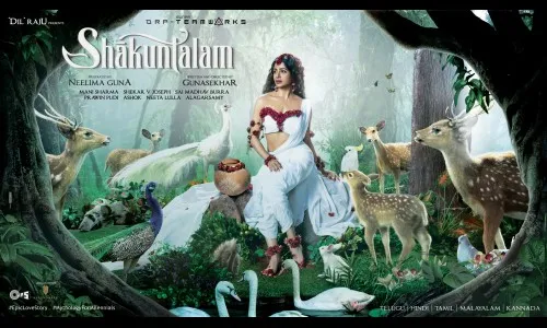 समांथाची महाकाव्य प्रेमगाथा ‘शांकुतलम’च्या प्रदर्शनाची तारीख अद्याप जाहीर करण्यात आलेली नाही. शांकुतलमच्या पोस्टरमध्ये समांथाने पांढऱया रंगाचा पोशाख परिधना केला असून यात ती एका राजकन्येच्या वेशभूषेत दिसून येतेय. याचबरोबर अभिनेत्रीच्या चहुबाजूला हरिण, ससा, बदक, मोर इत्यादी अनेक प्राणी दिसून येत आहेत. पूर्ण निसर्ग अभिनेत्रीचे सौंदर्य न्याहाळत असल्याचे पोस्टर पाहून वाटू लागते. शांकुतलममधील अभिनेत्रीचा हा लुक प्रत्येकाला मोहित करणार आहे.