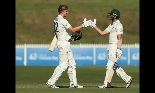 येथे सुरू असलेल्या पहिल्या सरावाच्या सामन्यात सोमवारी खेळाच्या दुसऱया दिवशी ऑस्ट्रेलिया अ संघाने भारत अ संघाविरुद्ध पहिल्या डावात 8 बाद 286 धावा जमविल्या. ऑस्ट्रेलिया अ संघातील कॅमेरून ग्रीनने शानदार शतक झळकविले. तत्पूर्वी भारत अ संघाने आपला पहिला डाव 9 बाद 247 धावांवर घोषित केला. अजिंक्मय रहाणे 117 धावांवर नाबाद राहिला.