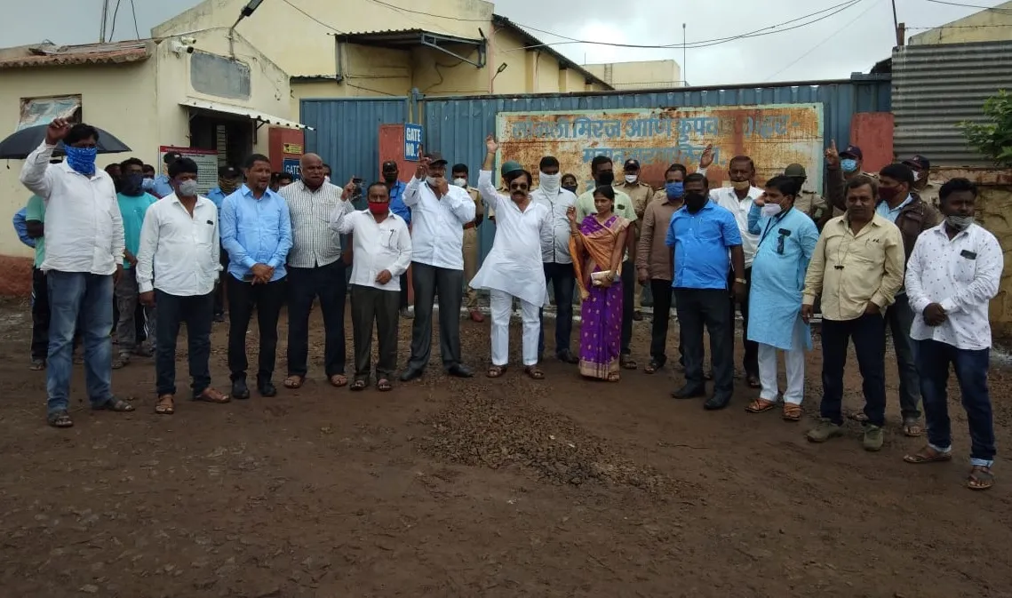 बेडग रोडवरील कत्तलखाना या परिसरात राहणाऱ्या नागरिकांसह आसपासच्या सात गावातील ग्रामस्थांच्या आरोग्यास धोकादायक ठरत असल्याने तो कायमचा बंद करावा, यासाठी पंचायत समितीच्या माध्यमातून आंदोलन हाती घेण्यात आले आहे. कत्तलखाना बंद न केल्यास आत्मदहन करण्याचा इशारा देण्यात आला होता. त्यामुळे आज कत्तलखान्यासमोर पोलिसांनी मोठा बंदोबस्त तैनात केला होता. कोरोनाच्या पार्श्वभूमीवर जिह्यात जमावबंदी लागू करण्यात आल्याने आंदोलकांनी कत्तलखान्यासमोर केवळ निदर्शने करुन महापालिका आरोग्याधिकाऱ्यांना निवेदन दिले.