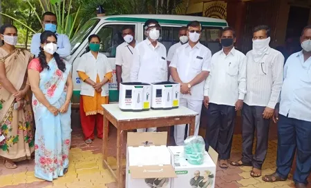 वाळवा तालुक्यातील बोरगाव येथे माणुसकी फाउंडेशनच्या वतीने प्राथमिक आरोग्य केंद्रास प्राथमिक स्टेजमध्ये असणाऱ्या कोरोनाबाधित रुग्णांवर घरीच उपचार करण्यासाठी दोन ऑक्सिजन मशीनचे वाटप करण्यात आले.