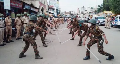 नवरात्रोत्सव आणि ईद-ए-मिलाच्या पार्श्वभूमीवर पोलिसांची रंगीत तालिम