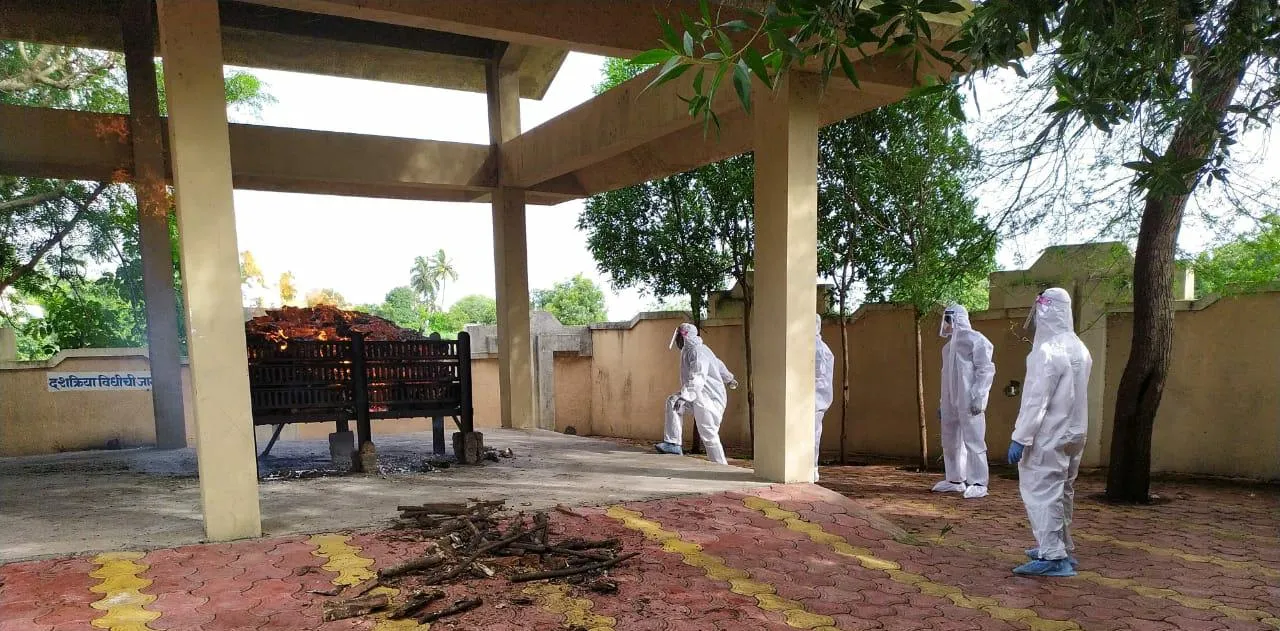 कोरोनाच्या भीषण संकटात नाती दुरावत चालली आहेत. कोरोना झाल्याचे समजताच रक्ताने जोडलेली माणसं लांब राहतात. कोरोना बाधित मयतावर अंत्यसंस्कार करताना खबरदारी आणि जबाबदारी दोन्हीचे पालन करावे लागते. जिथे नातेवाईक दूर राहतात तिथे नगरपालिकेचे कोव्हीड योद्धे धोका पत्करून ही जबाबदारी पार पाडत आहेत.