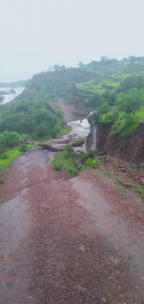 डोंगरी भागात पावसाची मुसळधार सुरू आहे. त्यामुळे भूसंख्यलन होऊन जमीन खचू लागली आहे. ओढ्यांना पुर आले आहेत. परळी खोऱ्याच्या डोंगरमाथ्यावरील पळसावडे धरण ओव्हरफ्लो होऊन पाणी मोठ्या प्रमाणात वाहत आहे. त्यामुळे सांडवली कडे जाणारा रस्ता धरणाजवळ खचला असल्याने पाच गावांचा संपर्क तुटला आहे. दुधाची वाहतुक करणाऱ्या दोन वाहनांसह अन्य वाहने गावातच अडकुन पडली आहेत.