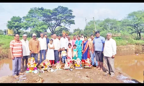 येथील साई कॉलनीतील सार्वजनिक गणेशोत्सव मंडपाच्या कार्यकत्यांनी ट्रक्टर ट्रॉलीमध्ये प्लास्टिक ताडपत्री घालून कृत्रिम टाकी तयार करून त्यात जवळ जवळ 40 गणेशमूर्तीं विसर्जन केल्या. नदी, विहिरी, तलाव, आदी ठिकाणी गणेशमूर्ती विसर्जन केल्यामुळे मूर्तीला लावलेल्या रासायनिक रंगामुळे पाणी दूषित होत आहे. या पाण्याच्या सेवनाने नदी, विहिरी, तलावातील मासे व इतर जलचर प्राण्यांना जीव गमवावा लागत आहे. जनावरांना सुद्धा पाणी हानीकारक ठरत आहे. ट्रक्टर ट्रॉलीमध्ये विसर्जन केल्यास कोणताच धोका नाही.