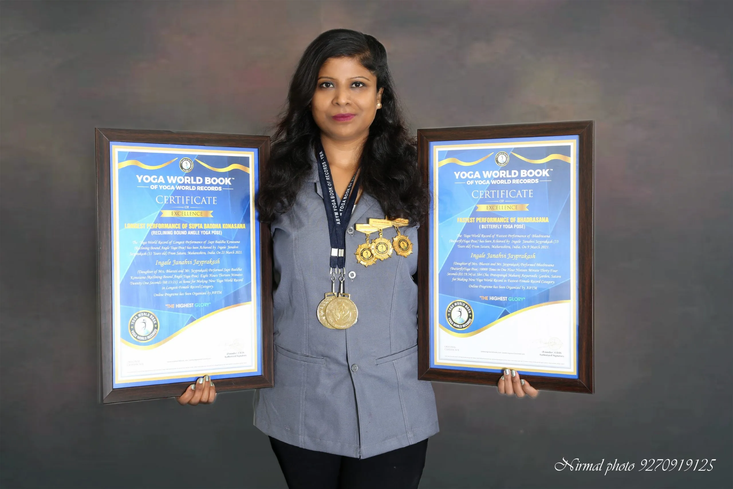 सातारच्या जान्हवी जयप्रकाश इंगळे हिने सुप्त बद्ध कोनासन या आसन प्रकारात 8 तास 13 मिनिटे 21 सेकंद स्तब्ध राहून तिसरा नवा विश्वविक्रम प्रस्थापित केला आहे. या विश्वविक्रमाची नोंद योगा बुक ऑफ रेकॉर्डमध्ये झाली असून, तिला गोल्ड मेडल, सर्टीफिकेट, बँच होल्डर देवून सन्मानित करण्यात आले आहे.
