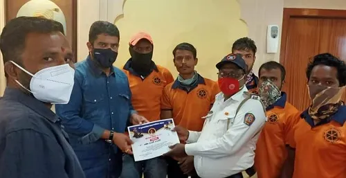 आ. शिवेंद्रसिंहराजे यांच्या हस्ते पोलीस कर्मचारी अमित माने, ओंकार यादव, लैलेश फडतरे, स्वप्निल कुंभार, राहुल चव्हाण, वैशाली गुरव, हसन तडवी, पंकज मोहिते, वाहतूक शाखेचे जितेंद्र जाधव, सातारा पालिकेतील आरोग्य कर्मचारी संदीप पाटसुते, कपिल मट्ठू, अमोल खंडुझोडे, तुकाराम खंडुझोडे, लक्ष्मण कांबळे, विकास जाधव, चंद्रकांत खुडुझोडे, गणेश जाधव, अजय शिंदे, सुनिल गांदले, निसार कच्छी, अक्षय अवघडे, तानाजी वाघमारे, सागर वायदंडे, प्रशांत दोरके, चैतन्य सणस, दिपक भोसले आदींचा सन्मानपत्र आणि गुलाबपुष्प देवून सन्मान करण्यात आला.