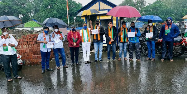 या आंदोलनात सर्वांनी संजय राऊत आणि त्यांना पाठीशी घालणारे तिघाडी सरकार यांचा निषेध करणारे फलक हातात घेतले होते आणि त्याच्या निषेधाच्या घोषणा देण्यात आल्या यासाठीचे निवेदन अप्पर जिल्हाधिकारी रामचंद्र शिंदे यांचेमार्फत राज्यपाल भगत सिंहजी कोठारी यांना तसेच मुख्यमंत्री उद्धव ठाकरे, आरोग्यमंत्री डॉ. राजेश टोपे यांना पाठवले.