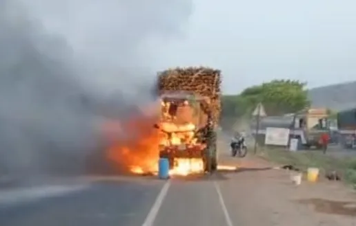 याबाबत अधिक माहिती अशी की, महामार्गावर बेलवडे हवेली गावच्या हद्दीत कराड ते उंब्रज दिशेने ऊस भरून ट्रॅक्टर कारखान्याकडे निघाला होता. सायंकाळी साडेसहा वाजण्याच्या सुमारास सदरचा ट्रॅक्टर बेलवडे गावच्या हद्दीत आल्यानंतर ट्रॅक्टरने अचानक पेट घेतला. त्यामुळे चालकांची भंबेरी उडाली. चालक हरिश्चंद्र केशव काशिद (रा. बीड) यांनी ट्रॅक्टर थांबून बाहेर उडी घेतली. वाऱ्याचा वेग प्रचंड असल्याने ट्रॅक्टरने जोराचा पेट घेतला त्यामुळे महामार्गावर ज्वाळा दिसत होत्या.
