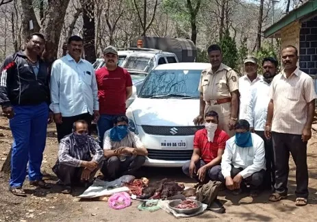 गत महिनाभरा पासुन विभागात वनवा भडकत आहे. वनक्षेत्रपाल विलास काळे, वनपाल सुभाष राऊत, डि. डी. बोडके, अमृत पन्हाळे, जयवंत बेंद्रे यांच्या सह वनमजुर रात्र गस्त करत आहेत. सोमवारी मध्यरात्री २.३० च्या दरम्यान गस्त सुरू असताना सणबुर – रुवले रस्त्यावर पाटीलवाडी नजिक वाहनांची तपासणी करत असताना स्विफ्ट कार एम एम एच -०९ डी ए १३७३ अडवून त्याची तपासणी केली असता त्या कारमध्ये रानडुकराचा मांस भाग आढळुन आला.