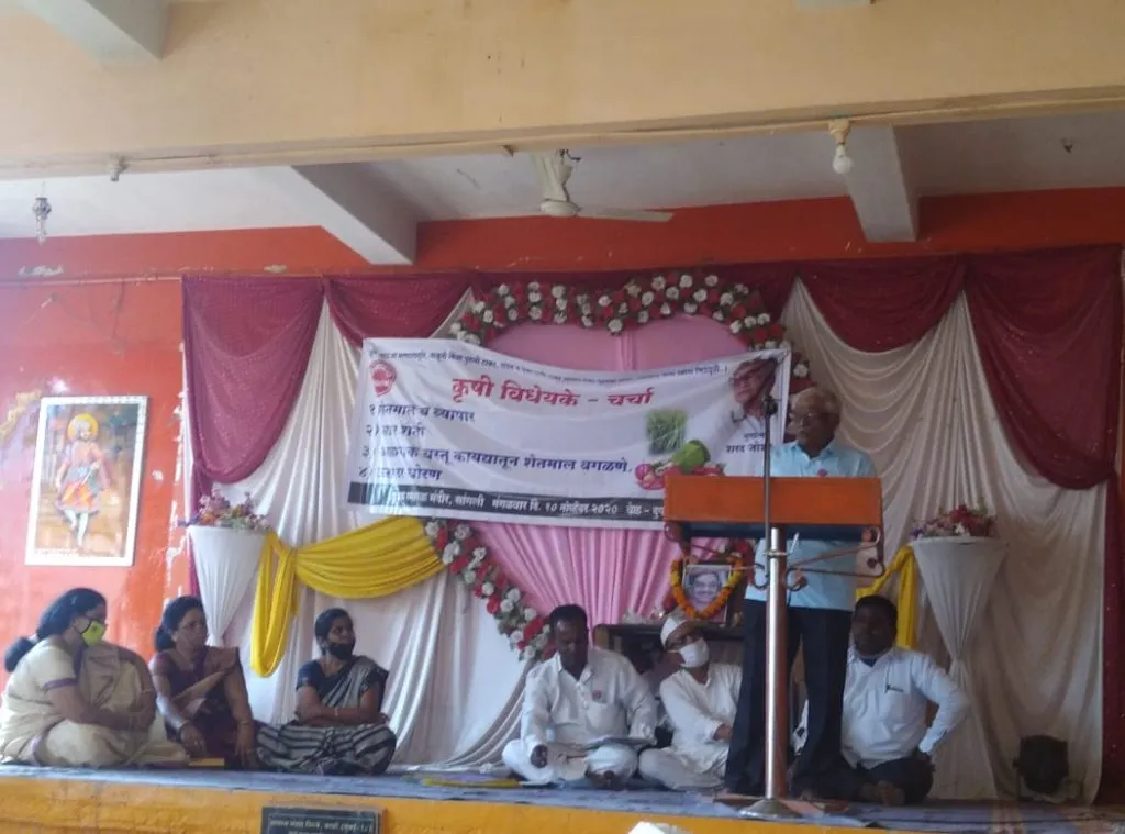 प्रमुख वक्ते शेतकरी संघटनेचे सहकार आघाडीचे राज्यप्रमुख संजय कोल्हे म्हणाले, नव्या कृषी कायद्यात काही त्रुटी असल्या तरी त्यामुळे शेतकऱ्यांना खुल्या बाजाराचे दार उघडले आहे. तसेच शेतकऱ्यांना बाजार स्वतंत्र्य दिले आहे. सरकारचे शेतमाल व्यापार नियंत्रण कमी करून, मार्केट यार्ड ही बाजारपेठ न ठेवता एक देश एक बाजारपेठ ही बाजारपेठ कायद्याने शेतकऱ्यांना दिली आहे. तरी करार शेतीला घाबरून न जाता त्याचा लाभ शेतकन्यांनी घ्यावा बाजार समित्या व हमीभाव राहणारच आहे.बाजारात स्पर्धा होऊन तसेच मध्यस्तांची (दलालांची) साखळी कमी होऊन ग्राहकांना अव्वाच्या सव्वा दरवाढीचा फटका बसणार नाही.