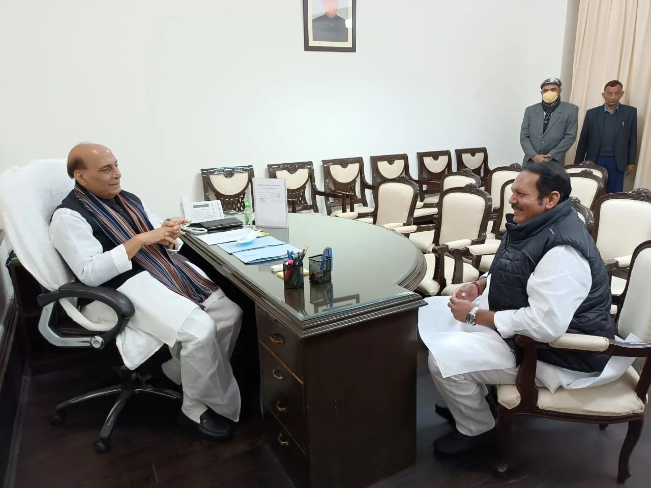 झुंजार सैनिक परंपरा लाभलेल्या सातारच्या भुमीत सैन्य भरती केंद्र सुरु करावे, आजी-माजी सैनिक आणि त्यांच्या कुटुंबियांसाठी मिलिटरी हॉस्पिटल किंवा कमांड हॉस्पिटलच्या अखत्यारितील वैदयकिय उपकेंद्र तातडीने सुरु करावे, या प्रमुख मागण्यांसाठी आज खासदार श्रीमंत छत्रपती उदयनराजे भोसले यांनी देशाचे संरक्षण मंत्री राजनाथसिंह यांची नवी दिल्ली येथे भेट घेवून चर्चा केली.