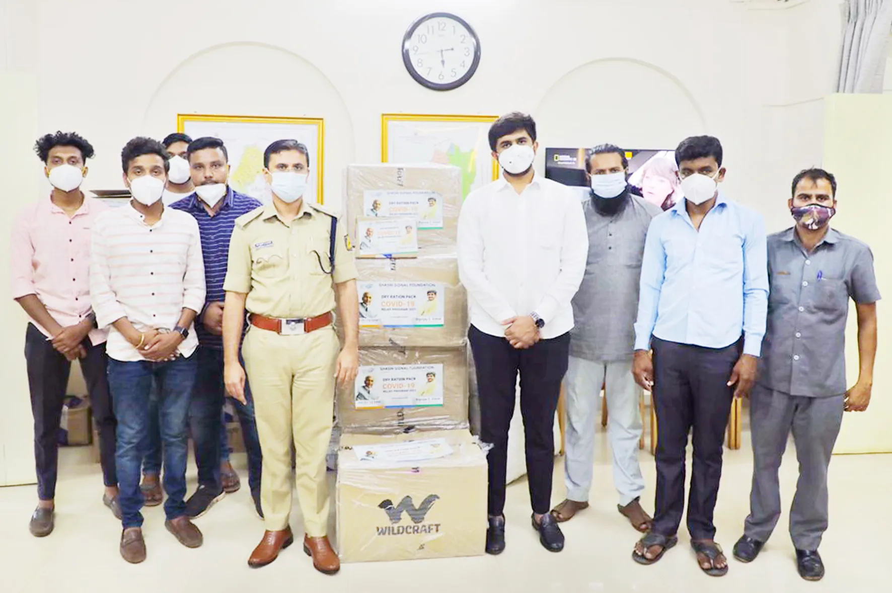 येथील शशी सिदनाळ फौंडेशनच्यावतीने बेळगाव शहर पोलिसांसाठी मास्क, सॅनिटायझर वाटप करण्यात आले. पोलीस उपायुक्त डॉ. विक्रम आमटे यांच्याकडे साहित्य सुपूर्द करण्यात आले. 3 हजार वॉईल्ड क्राप्टचे मास्क, 100 मिलीच्या 2 हजार सॅनिटायझरच्या बाटल्या, 1 हजार रबरी हॅन्डग्लोज व प्रत्येकी 5 लीटरच्या 20 सॅनिटायझरचे कॅन पोलीस दलासाठी देण्यात आले. फौंडेशनचे अध्यक्ष दिग्विजय सिदनाळ, अक्षय देशपांडे, अक्षय राजपूत, शिवू कड्डेण्णावर, मनू कब्बूर, सागर भग्यागोळ आदी यावेळी उपस्थित होते.