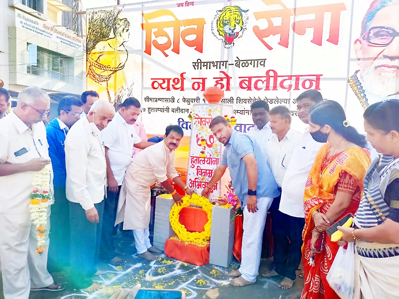 शिवसेनेच्यावतीने सम्राट अशोक चौक येथे 67 हुतात्म्यांना अभिवादन, महाराष्ट्रात जाण्याचा निर्धार कायम