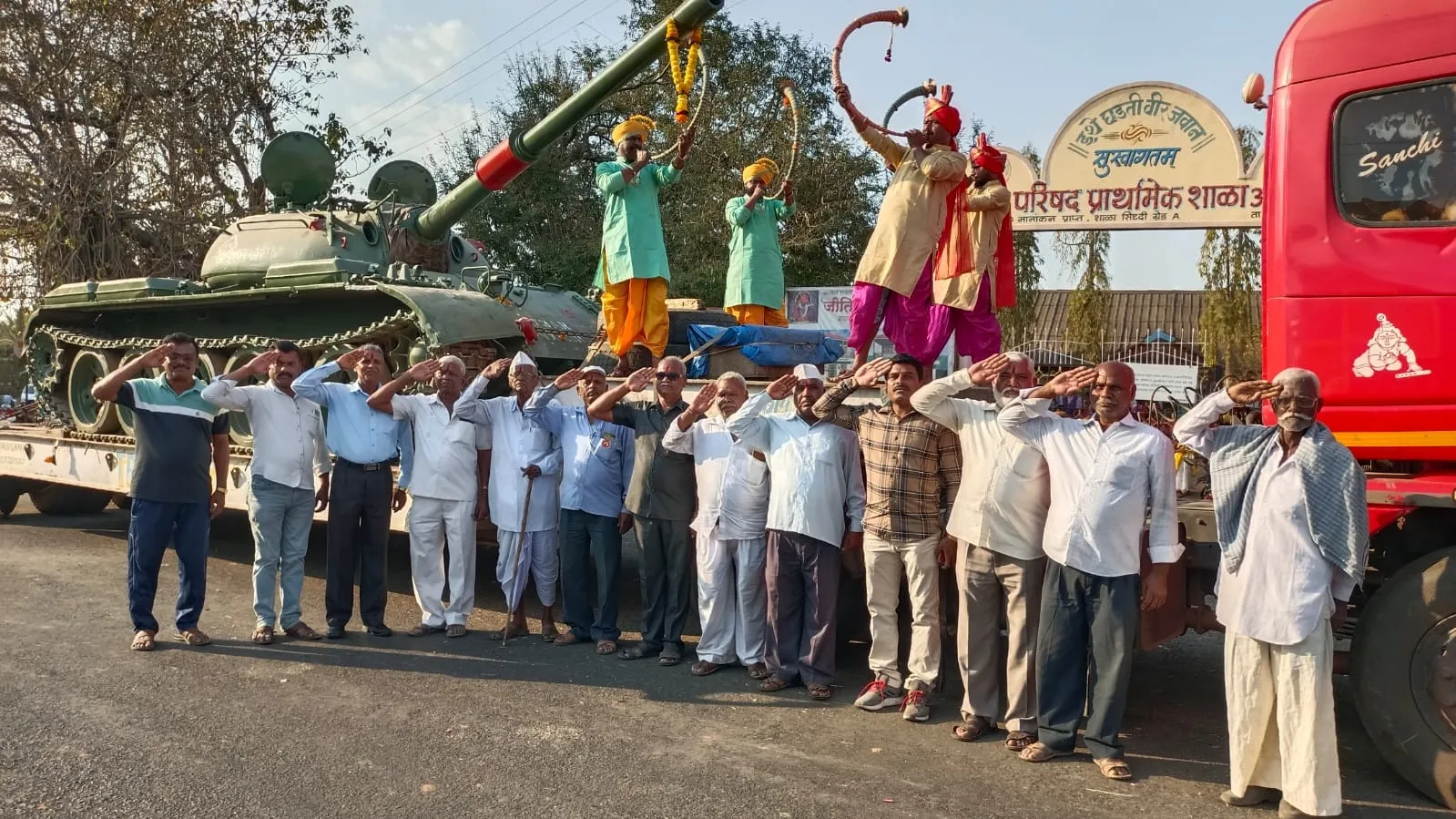 त्यानंतर बुधवारी 2 मार्च रोजी पुण्यातील खडकी येथून अपशिंगे (मि.) येथे कंटेनरमधून रणगाडय़ाचे आगमन झाले. रशियन बनावटीच्या टी-55 या मेन बेटल रणगाडय़ाचे स्वागत करण्याकरिता अबालवृद्ध, जवान आजी-माजी सैनिक, विविध संस्थाचे सदस्य, ग्रामपंचायत सदस्य आणि पंचक्रोशीतील ग्रामस्थ उपस्थित होते. रणगाडय़ाची वाजतगाजत मराठी शाळेपासून असेंब्ली हॉलपर्यंत मिरवणूक काढण्यात आली. त्यानंतर नियोजित जागी चबुतरा बांधून त्याच्यावर तो रणगाडा ठेवण्यात आला. या रणगाडय़ामुळे सैनिकांचे गाव म्हणून ओळखल्या जाणाऱया अपशिंगे (मि.) गावच्या वैभवात मानाचा तुरा रोवला गेला आहे.