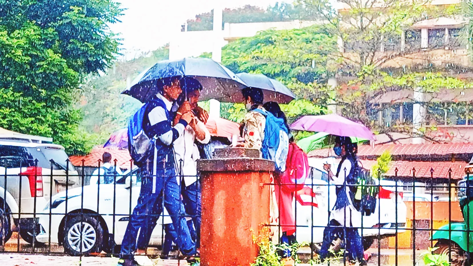 सध्या शाळा तसेच महाविद्यालये सुरू असून विद्यार्थी शाळेला जात आहेत. त्यांनाही या पावसाचा फटका बसला आहे. रविवारी रात्रीपासूनच जोरदार पावसाला सुरुवात झाली. त्यानंतर सोमवारी सकाळीही तसेच दिवसभर पावसाच्या दमदार सरी अधूनमधून कोसळत होत्या. पावसामुळे अनेक रस्त्यांवर व सखल भागांमध्ये पाणी साचले होते.