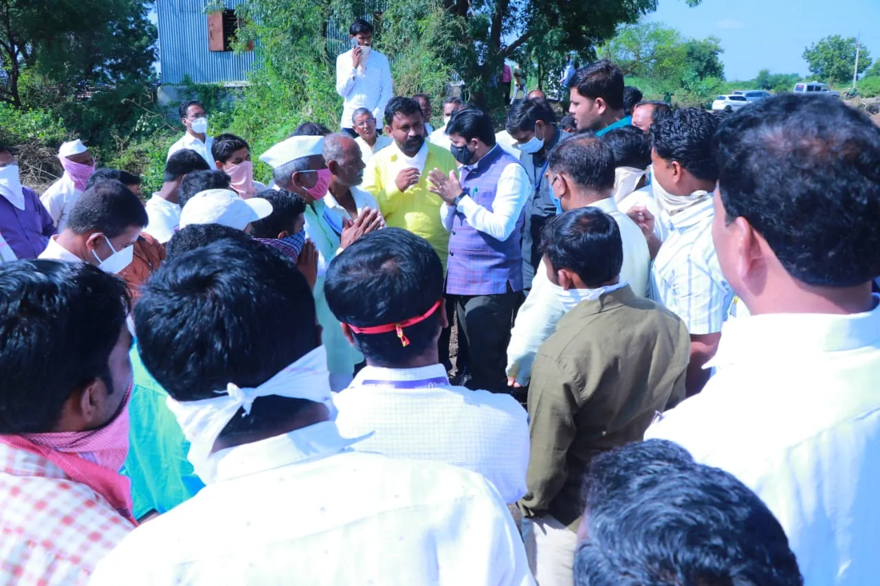 लोहारा तालुक्यातील करजखेडा येथील अतिवृष्टीने झालेल्या शेती पिकाच्या नुकसानीची पाहणी राज्यमंत्री बनसोडे करत होते.त्या प्रसंगी त्यांनी शेतकऱ्यांशी संवाद साधून त्यांना धीर दिला.