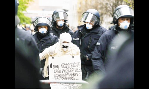 जर्मनीच्या पोलिसांनी बर्लिनमध्ये टाळेबंदीच्या विरोधात निदर्शने करणाऱया 10 पेक्षा अधिक जणांना अटक केली आहे. या निदर्शनांमध्ये 5 पोलीस कर्मचारी जखमी झाले आहेत. जर्मनी आणि पोलंडच्या सीमेवरही लोक निदर्शने करत आहेत. देशात 4 मेपासून शाळा सुरू होऊ शकतात. 30 एप्रिल रोजी चॅन्सेलर अँजेला मर्केल यासंबंधी निर्णय घेऊ शकतात. जर्मनीत आतापर्यंत 5,877 जणांना कोरोनामुळे जीव गमवावा लागला असून 1,56,513 जणांना कोरोनाची लागण झाली आहे.