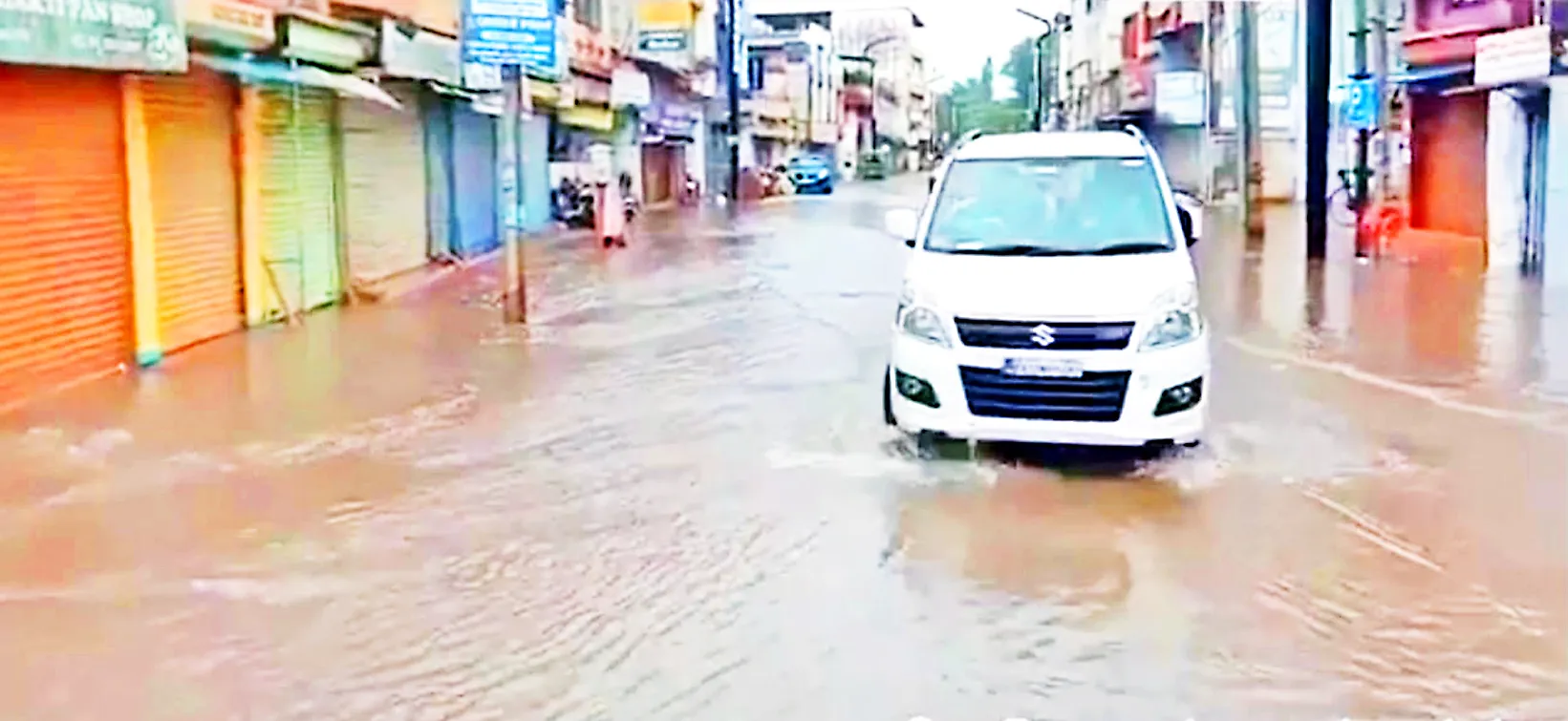 स्मार्ट सिटी योजनेंतर्गत शहराच्या विविध रस्त्यांचे काँक्रिटीकरण करण्यात येत आहे. सांडपाण्याचा निचरा होण्यासाठी रस्त्याशेजारील गटारींचे बांधकाम करण्यात येत होते. मात्र स्मार्टसिटीच्या संकल्पनेतून गटारी गायब झाल्या आहेत. त्या ठिकाणी पाईप घालण्यात आले आहे. पण स्मार्टसिटीच्या नव्या संकल्पनेचा फटका शहापूर-खडेबाजार परिसरातील व्यावसायिकांना बसला आहे. शनिवारी विविध भागात जोरदार पाऊस झाला. त्यामुळे शहरात पाणीच पाणी झाले. विविध रस्त्यांच्या कॉंक्रिटीकरणानंतर गटारी बांधण्याऐवजी पाईप घालण्यात आल्याने पाण्याचा निचरा झाला नाही. त्यामुळे अवघ्या 20 मिनिटांच्या पावसाच्या पाण्यामुळे विविध भागातील रस्त्यावर एकफुटापेक्षा जास्त पाणी साचले होते. परिणामी विकासकामे राबविण्यासाठी खर्ची घालण्यात आलेला निधी पाण्यात गेला असल्याचा आरोप नागरिक करीत आहेत.