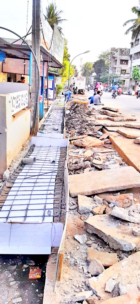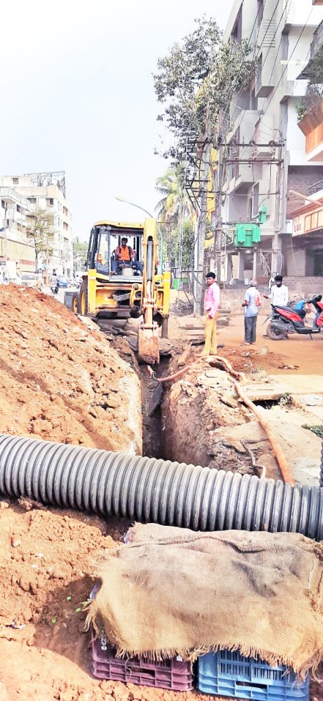 रस्त्याचे काम अर्धवट असतानाच अनगोळ नाका ते मृत्युंजयनगर, भाग्यनगर कॉर्नरपर्यंत एका बाजुने डेनेजची पाईप घालण्यात आली आहे. पण हरिमंदिरच्या बाजुने डेनेजची पाईपलाईन घालण्यात आली नाही. याबाबत नागरिकांनी तक्रारी केल्या होत्या. त्यामुळे पुन्हा आता ही पाईपलाईन घालण्यास सुरुवात करण्यात आली आहे.