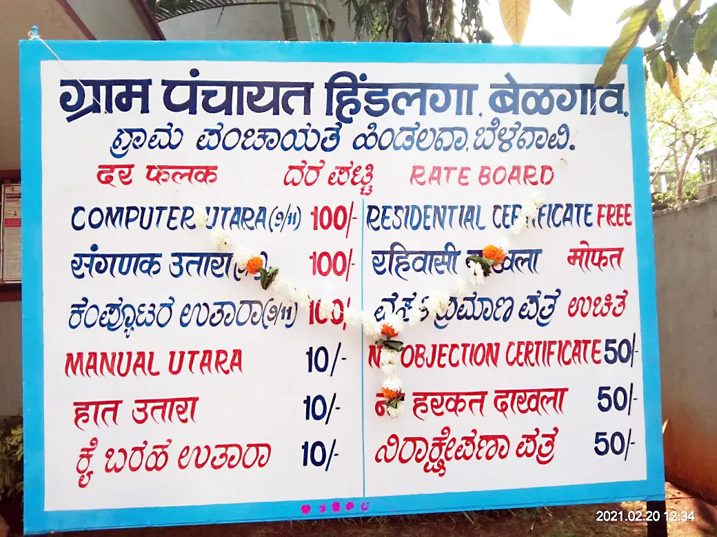 तालुक्यातील बहुतांश ग्राम पंचायत कार्यालयांमधून किरकोळ कामांसाठी नागरिकांची आर्थिक पिळवणूक केली जाते. शासकीय दरपत्रक वेगळेच व पंचायतीची आकारणी वेगळीच असे प्रकार सर्रास घडतात. पण हिंडलगा ग्राम पंचायत याला अपवाद ठरली असून कार्यालयासमोर चक्क ठराविक कागदपत्रांचे दरपत्रक लावून नागरिकांची कोणत्याही प्रकारची लूट होऊ नये, याची खबरदारी घेण्यात आली आहे. त्यामुळे पंचायतीच्या निर्णयाबद्दल ग्रामस्थांतून समाधान व्यक्त होत आहे.