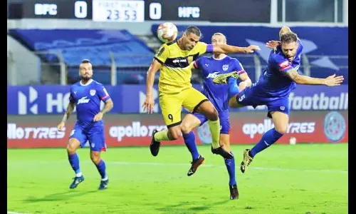 सातव्या हिरो इंडियन सुपरलीग फुटबॉल स्पर्धेत शनिवारी हैदराबाद एफसी आणि बेंगलोर एफसी यांच्यातील लढत गोलशून्य बरोबरीत संपली. फातोर्डा येथील नेहरु स्टेडियमवर खेळविण्यात आलेल्या या सामन्यातील निकालाने उभय संघाना प्रत्येकी एक गुण प्राप्त झाला. बेंगलोर एफसीची ही सलग दुसरी बरोबरी ठरली. हैदराबादचे आता दोन सामन्यांतून 4 तर बेंगलोर एफसीचे 2 गुण झाले आहेत.