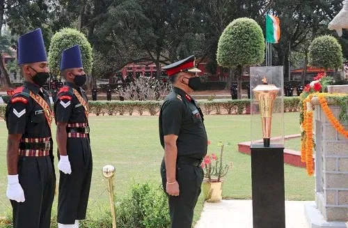 मद्रास अभियंता गट (एमईजी) आणि केंद्राच्या शूर सैनिकांनी विजय ज्योतीचे भव्य स्वागत केले. एमईजी ग्रुप आणि सेंटरच्या शहीद स्मारकात कर्नाटक आणि केरळ उप-प्रांत, कमांडिंग जनरल ऑफिसर, मेजर जनरल जे. व्ही. प्रसाद यांनी ही विजय ज्योत आयोजित केली.