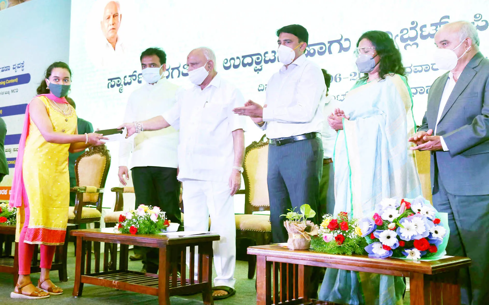राज्यात 430 सरकारी प्रथमश्रेणी महाविद्यालये, 87 सरकारी पॉलिटेक्निक आणि 14 सरकारी इंजिनियरिंग कॉलेजमध्ये शिक्षण घेत असलेल्या 1.55 लाख विद्यार्थ्यांना मोफत टॅब वितरीत करण्यात येत आहेत. या योजनेसाठी राज्य सरकारने 163 कोटी रुपये खर्च केले आहेत. ग्रामीण आणि शहरी भागातील विद्यार्थ्यांच्या अध्ययन प्रक्रियेतील तफावत दूर करण्यासाठी ही डिजिटल व्यवस्था उपयुक्त ठरणार आहे, असे प्रतिपादन येडियुराप्पा यांनी याप्रसंगी केले.