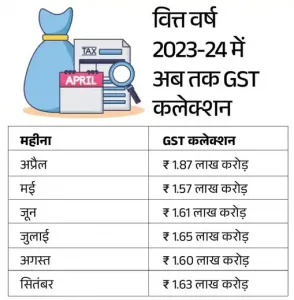 एका महिन्यापूर्वी ऑगस्टमध्ये सरकारने 1.59 लाख कोटी रुपयांचा जीएसटी गोळा केला होता. तर जुलैमध्ये 1.65 लाख कोटी रुपयांचा जीएसटी जमा झाला होता. सप्टेंबरमध्ये सलग सातव्यांदा महसूल संकलन 1.5 लाख कोटी रुपयांच्या वर पोहोचले आहे. तथापि, आतापर्यंत सर्वोच्च जीएसटी संकलन एप्रिल 2023 मध्ये जमा झाले असून हा आकडा 1.87 लाख कोटी रुपयांच्या पुढे गेला होता. याशिवाय, सलग 19 महिन्यांपासून देशाचे जीएसटी संकलन 1.4 लाख कोटी रुपयांच्या वर राहिले आहे. आर्थिक वर्ष 2023-24 मध्ये म्हणजेच गेल्या पाच महिन्यांत आतापर्यंत एकूण 9.93 लाख कोटी रुपयांचे जीएसटी संकलन झाले आहे. तर आर्थिक वर्ष 2022-23 मध्ये एकूण जीएसटी संकलन 18.10 लाख कोटी रुपये होते.