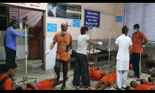 पश्चिम बंगालच्या कूचबिहारमध्ये पिकअप व्हॅनचा विजेच्या वाहिनीशी संपर्क झाल्याने 10 भाविकांचा (कांवडी) मृत्यू झाला आहे. तर 16 जण गंभीर जखमी झाले आहेत. या जखमींना जलपाईगुडी येथील रुग्णालयात दाखल करण्यात आले आहे. ही दुर्घटना रविवारी रात्री उशिरा मेखलीगंजनजीक घडली आहे.