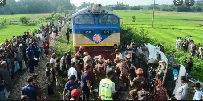 बांगलादेशातील चितगाव जिह्यातील रेल्वे क्रॉसिंगवर शनिवारी भीषण अपघात झाला. रेल्वेमार्ग पार करणाऱया मिनीबसला रेल्वेने धडक दिल्यामुळे मिनी बसमधील 11 जणांचा मृत्यू झाला. तर 5 जण जखमी झाले आहेत. मृतांमध्ये 7 विद्यार्थ्यांचा समावेश आहे. मिरशराई उपजिल्हय़ामध्ये हा अपघात झाला. मिनी बसमध्ये कोचिंग सेंटरचे विद्यार्थी व शिक्षक उपस्थित होते. मिनीबस रेल्वे क्रॉसिंगवरून जात असताना ढाकाकडे जाणाऱया प्रोवती एक्स्प्रेसची धडक बसल्याने ही दुर्घटना घडल्याचे सांगण्यात आले.
