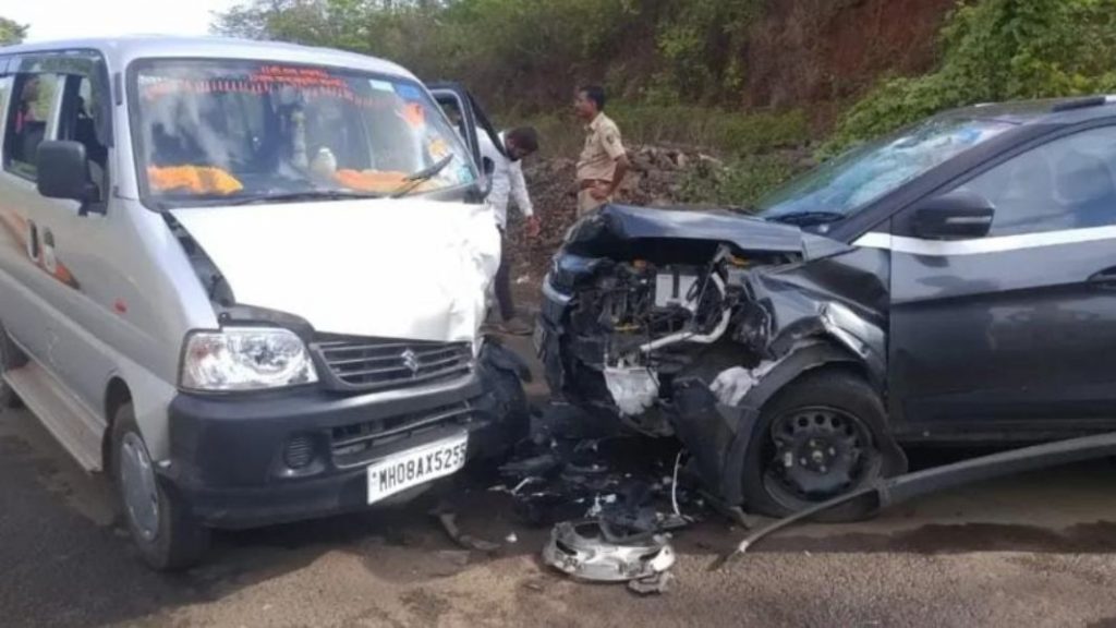 गणपतीपुळेहून चिपळूण कडे जाणाऱ्या इको गाडीन तर पुणे भोर येथून गणपतीपुळे जाणारी नेक्सॉन गाडी यांच्यात टक्कर झाली. या अपघात दोन्ही गाड्यांचे नुकसान झाले. दोन्ही गाडीमधील 12 जण किरकोळ जखमी झाले.