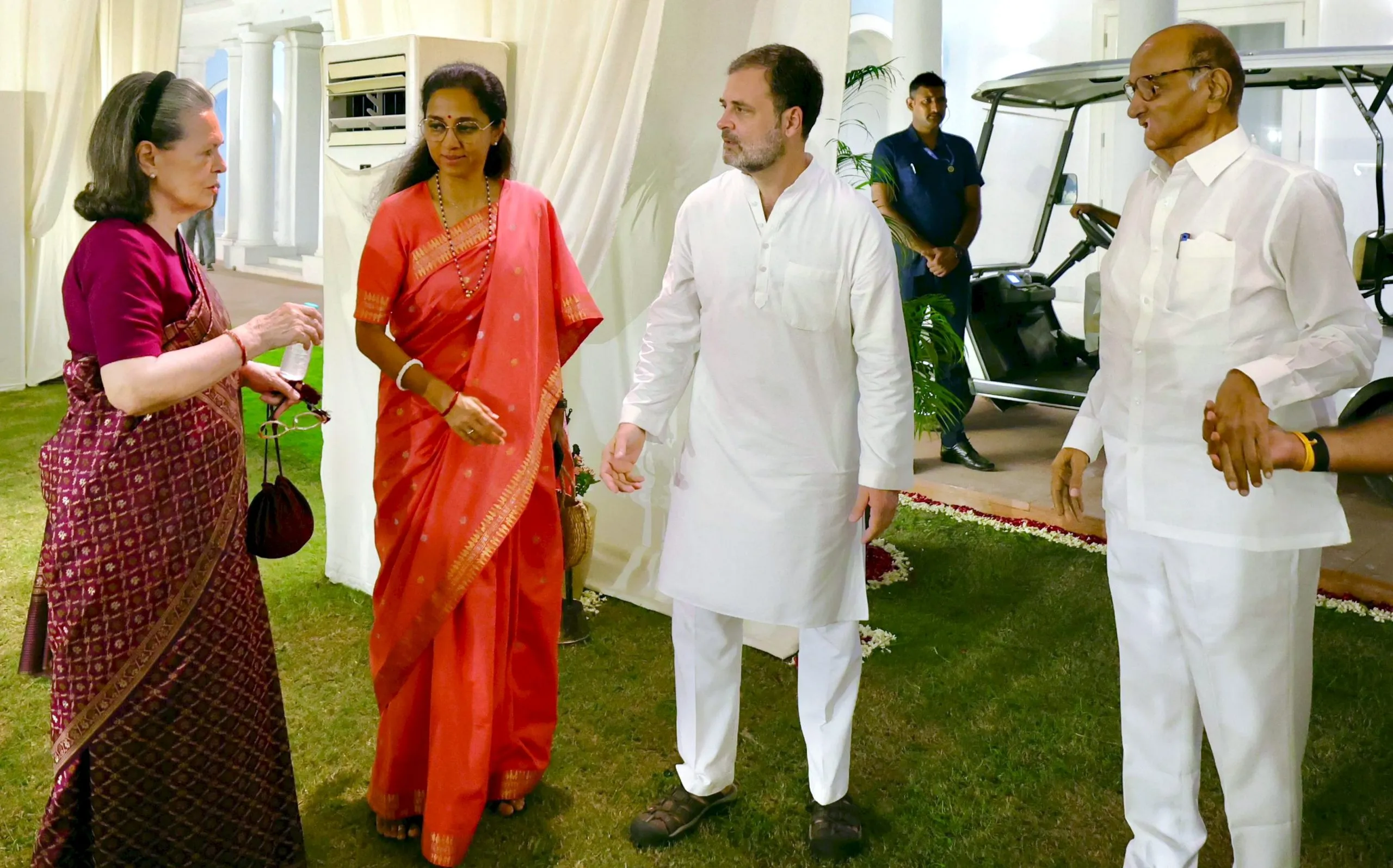 दिल्लीत गुरुवारी रात्री ‘इंडिया’ आघाडीच्या नेत्यांची बैठक झाली. काँग्रेस नेते राहुल गांधी यांच्या आमंत्रणानुसार त्यांच्या निवासस्थानी आयोजित ‘डिनर’ बैठकीमध्ये 24 पक्षांचे 50 हून अधिक नेते आणि खासदार पोहोचले होते. ममता बॅनर्जी यांचा पक्ष टीएमसीसह सपा, राजद, शिवसेना, द्रमुक, राष्ट्रवादी आणि सीपीआयचे नेतेही उपस्थित होते. ‘