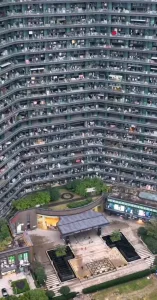 चीनच्या किअंजियांग सेंच्युरी सिटी, हांग्झोऊमध्ये तयार द रिजेंट इंटरनॅशनल अपार्टमेंट अजब कारणामुळे चर्चेत असते. एस पॅटर्नमध्ये तयार या इमारतीत एकूण 30 हजार लोक राहतात. इतक्या लोकसंख्येतून एक छोटे शहरच तेथे तयार झाले आहे. या 36 मजली इमारतीला 2013 मध्ये खुले करण्यात आले होते. त्यावेळी या इमारतीत 20 हजार लोक राहत होते. आता 10 वर्षांनी यात राहणाऱ्या लोकांची संख्या 30 हजारांवर पोहोचली आहे.