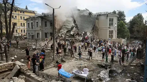 पंतप्रधान नरेंद्र मोदींच्या मॉस्को दौऱ्यादरम्यान रशियाने युव्रेनच्या अनेक भागात हल्ले केले आहेत. त्यात लहान मुलांच्या ऊग्णालयाचाही समावेश आहे. रशियन हल्ल्यात किमान 31 लोकांचा मृत्यू झाल्याचा दावा केला जात आहे. याशिवाय दीडशेहून अधिक लोक जखमी झाले आहेत. कीवमध्ये 17 लोकांचा मृत्यू झाला असून त्यामध्ये रुग्णालयात मृत्यू झालेल्या दोन मुलांचा समावेश आहे. याशिवाय निप्रोपेत्रोव्स्कमध्ये 11 तर पूर्व युव्रेनमधील पोक्रोव्स्कमध्ये 3 जणांचा मृत्यू झाला आहे. युव्रेनचे राष्ट्राध्यक्ष वोलोदिमिर झेलेन्स्की यांनी या घटनेचा निषेध केला आहे. रशियाने कीव आणि स्लोव्हियान्स्कसह अनेक शहरांवर सुमारे 40 क्षेपणास्त्र हल्ले केले आहेत. यामध्ये रहिवासी इमारती आणि मुलांच्या रुग्णालयाचे नुकसान झाले आहे.