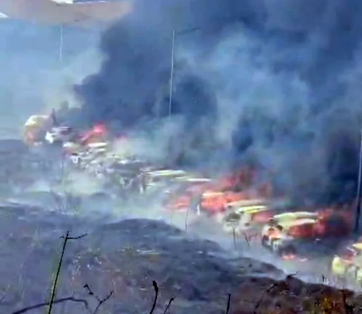 स्कॉडाच्या 22 तर रेनॉल्टच्या 11 कारचा समावेश : सुक्या गवताला लागलेल्या आगीमुळे दुर्घटना,प्राथमिक अंदाजाने नुकसानी कोटांच्या घरात, गोव्यातील पहिलीच घटना