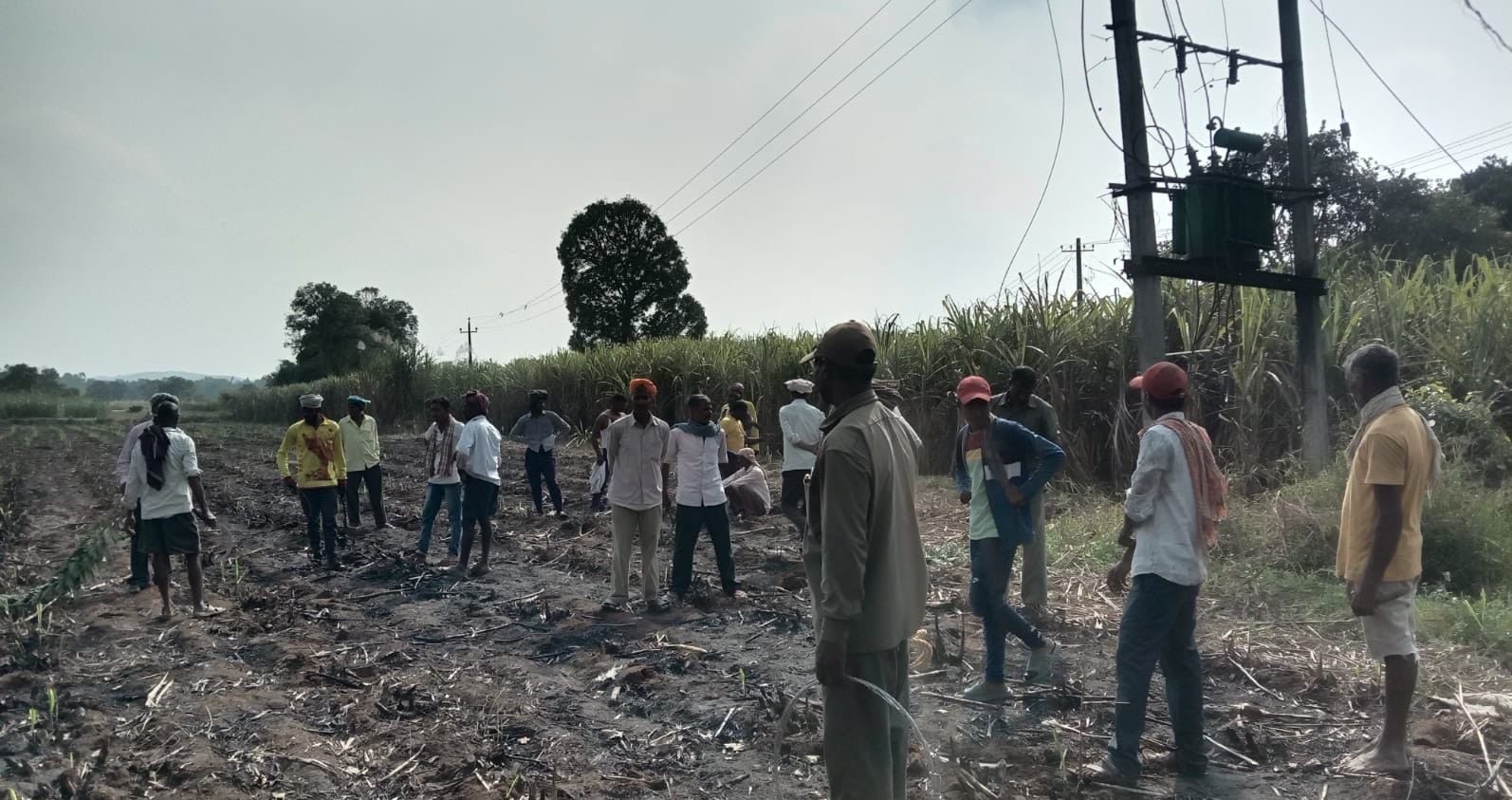 खानापूर : चापगाव येथे विद्युतभारित तार तुटून उसात पडल्याने उसाला आग लागून सुमारे 40 टन ऊस जळून खाक झाल्याची घटना शनिवारी दुपारी चापगाव येथील शिवारात घडली. येथील शेतकरी विनाजी पाटील यांच्या शेतात ही आग लागली आहे. यावेळी शेजारील शेतात काम करणाऱ्या शेतकऱ्यांच्या खबरदारीमुळे मोठा अनर्थ टळला आहे. मोठे खांब उभारून विद्युतपुरवठा केला जातो. शनिवारी दुपारी चापगाव येथील शिवारात एका ट्रान्स्फॉर्मरजवळ शॉर्टसर्किट होऊन विद्युतभारित तार तुटून उसात पडली. त्यामुळे आग लागून एकरातील ऊस जळून खाक झाला. यावेळी शेजारील शेतात काम करणाऱ्या शेतकऱ्यांनी खबरदारी घेत याबाबतची माहिती हेस्कॉमच्या कर्मचाऱ्याना दिली आणि तातडीने विद्युतपुरवठा बंद करण्यात आला. त्यामुळे मोठा अनर्थ टळला आहे. या परिसरात आजुबाजूला संपूर्ण ऊस पीक आहे. त्यामुळे शेतकऱ्यांनी खबरदारी घेत आग आटोक्यात आणण्यासाठी प्रयत्न केला. त्यामुळे शेजारील उसाला आगीपासून रोखण्यात शेतकऱ्यांना यश आले. यावेळी उदय पाटील, गजानन पाटील, कृष्णा पाटील, किरण पाटील, विष्णू पाटील, हणमंत बेळगावकर, अनिल बेळगावकर, जयराम पाटील, बाळू जिवाई, गजानन बेळगावकर, नारायण बेळगावकर या शेतकऱ्यांच्या प्रयत्नामुळे मोठा अनर्थ टळला.