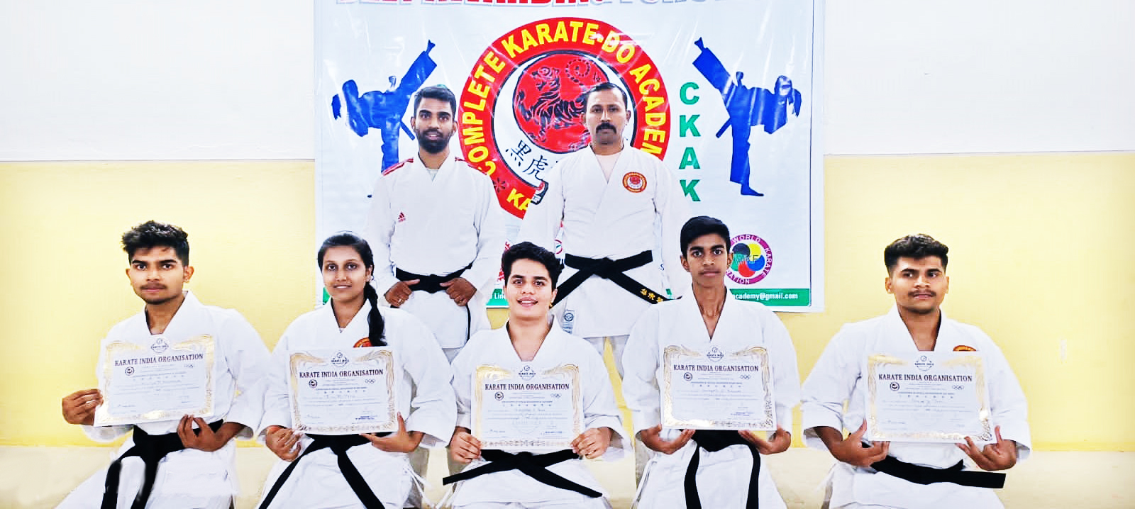 बेळगाव : कंम्प्लीट कराटे अकॅडमी व बेळगाव जिल्हा स्पोर्ट्स कराटे असोसिएशनचे 5 विद्यार्थ्यांना कराटे ब्लॅक बेल्ट प्रधान करण्यात आल. शानबाग हॉल कॅम्प जळगाव येथे कलर बेल्ट परीक्षा भरविण्यात आली. त्या परीक्षा मध्ये 225 विद्यार्थी सहभाग घेतले होता. उतीर्ण झालेलें खेळाडू पुढील प्रमाणे ओंकार पाटील, रितू पाटील, आदित्य काकतकर, समर्थ कल्लोरी, श्रेयस नाईक यांना बेळगाव जिल्हा क्रीडा कराटे संघटनेचे कार्यकर्ते जितेंद्र बी काकतीकर यांच्या हस्ते ब्लॅक बेल्ट स्मृतिचिन्ह देऊन सन्मानित करण्यात आले.