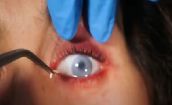चीनमध्ये एक अजब शस्त्रक्रिया नुकतीच करण्यात आली आहे. एक महिला तिच्या डोळ्यांतून सारखे पाणी येत होते आणि एक डोळा दुखतही होता, म्हणून डॉक्टरकडे गेली. डॉक्टरांनी प्राथमिक तपासणी केली तेव्हा फारसा दोष आढळला नाही. पण महिलेचा त्रास कमी होत नव्हता. म्हणून सखोल तपासणी केली असता डॉक्टरांनाही धक्का बसेल अशी वस्तुस्थिती असल्याचे त्यांना दिसून आले.