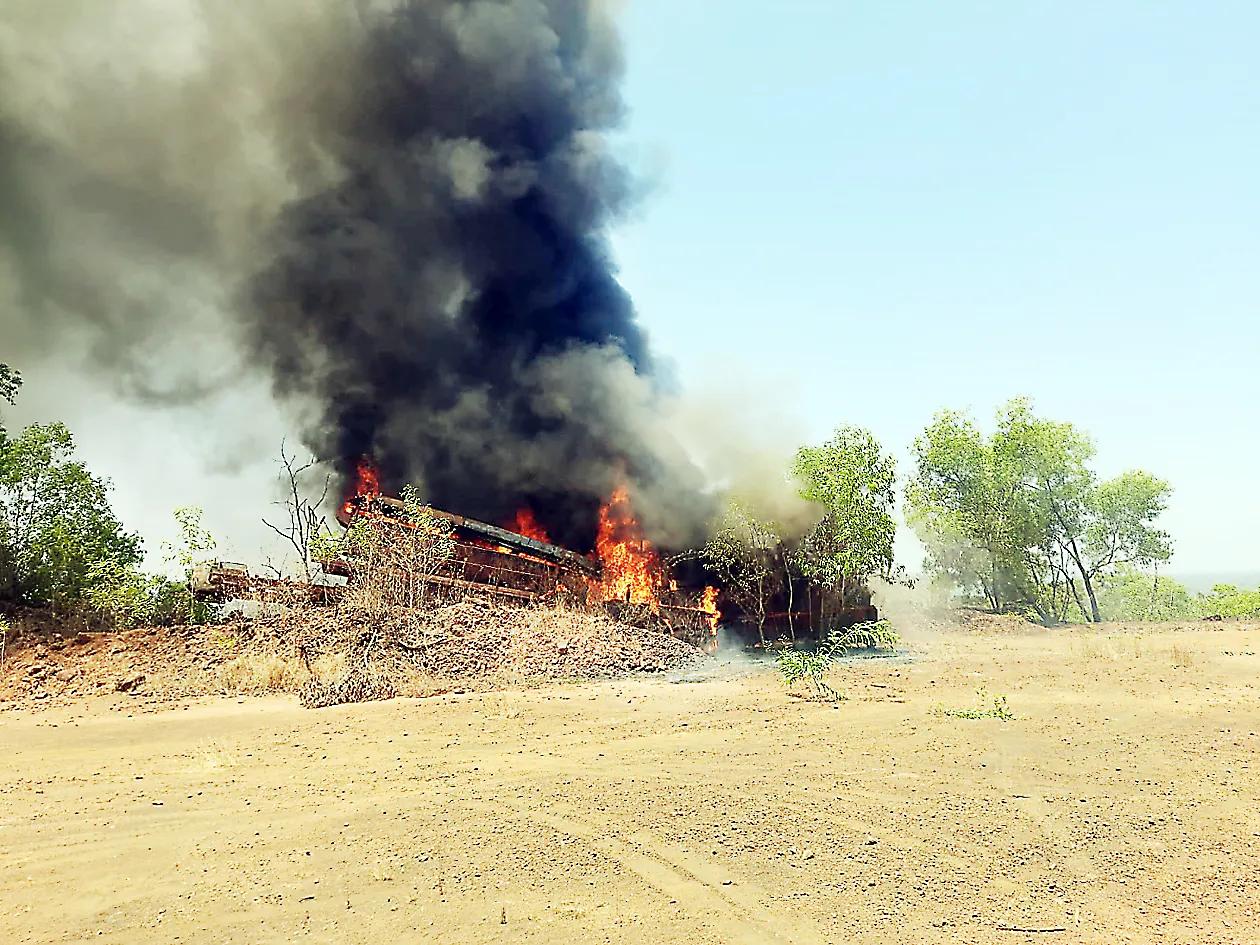 म्हापसा : शिरसई येथील कोणेशी भागात असलेल्या साळगांवकर खनिज मालाच्या ठिकाणी ठेवण्यात आलेल्या फिरत्या स्क्रीन प्लांटला आग लागून सुमारे 75 लाख ऊपयांचे नुकसान झाले. याबद्दल सविस्तर माहिती अशी की, कोणेशी शिरसई येथील जागेत अनिल साळगांवकर यांची खनिज मालाची खाण असून तेथे मालाची खनिज माती चालण्यासाठी फिरता (मूवेबल) स्क्रीन प्लांट लावण्यात आला होता. सदर व खनिज खाण लिलावाद्वारे दुसऱ्या कंपनीने घेतल्या कारणाने सदर स्क्रीन प्लांट तेथून इतर ठिकाणी नेण्यासाठी कंपनीद्वारे कंत्राट दिले होते. सदर कत्राटदाराचे कामगार तो क्रीन प्लांट सुटा करत असताना वेल्डिंगचाच्या ठिगणीमुळे प्लांटवर असलेल्या पेट्रोलजन्य पदार्थाला लागल्यामुळे आगीचा भडका उडाला व काही क्षणात आग भडकली. यावेळी अस्नोडा येथील पोलीस शिपाई शालक कळंगुटकर व दत्ता गावस त्या बाजूने जाताना त्यांनी धुराचा लोट पाहिला आणि घटनास्थळी धाव घेतली व डिचोली अग्निशमन दलाच्या कार्यालयात संपर्क साधला. थोड्या वेळात डिचोली अग्निशमन दलाचे सहाय्यक अधिकारी शिवाजी नाईक, अग्निशमन दलाचे जवान अमोल नाईक, लवशिद पिल्ले, रामचंद्र एकावडे व रूपेश गावस यांनी शर्थीचे प्रयत्न करून आग आटोक्मयात आणली. यावेळी साळगांवकर कंपनीचे सुरक्षा रक्षक अधिकाही बाळकृष्ण मडूरकर तेथे आले असता त्यांनी सांगितले की, सदर प्लांट येथे गेली दहा वर्षे बंद अवस्थेत होता तो आता सुरू करून इतरत्र हलविण्यात येणार होता. यामुळे कंपनीचे अंदाजे 75 लाख ऊपयांचे नुकसान झाल्याचे त्यांनी सांगितले.