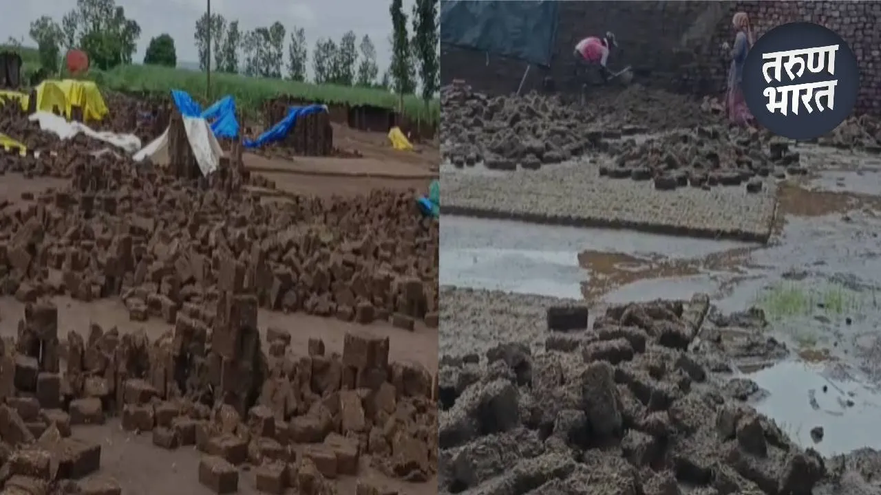 भाजण्यासाठी रचलेल्या भट्यांचे पावसामुळे अतोनात नुकसान