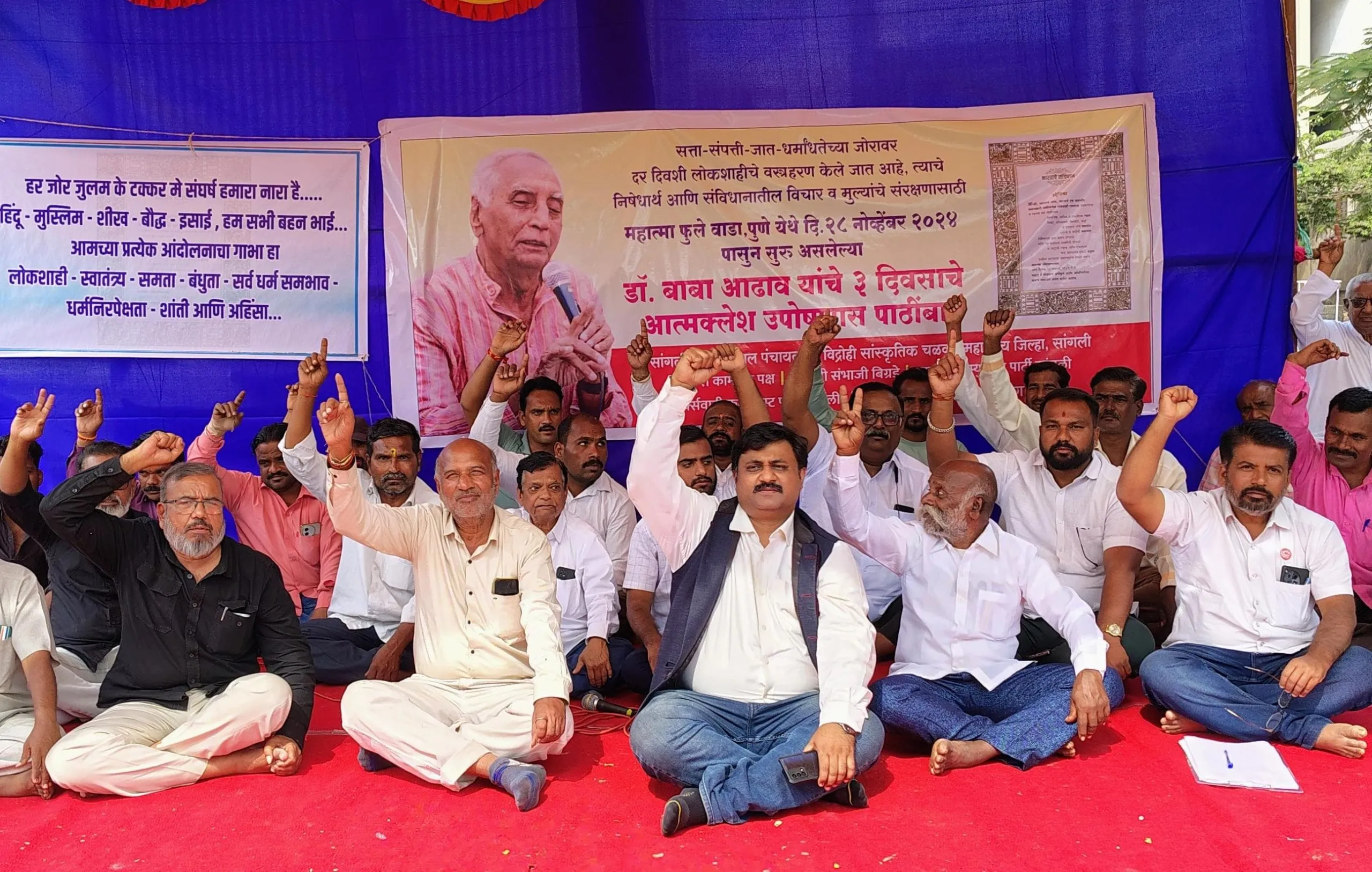 “सत्ता-संपत्ती- जात-धर्मांधतेच्या जोरावर दर दिवशी लोकशाहीचे होणारे वस्त्रहरण याच्या निषेधार्थ आणि संविधानातील विचार व मुल्यांच्या संरक्षणासाठी” पुण्यातील महात्मा फुले वाडा येथे २८ नोव्हेंबरपासून तीन दिवसीय आत्मक्लेश उपोषण सुरु आहे. ९४ वर्षीय योद्ध्याला राज्यातून विविध ठिकाणहून पाठींबा दिला जात आहे.
