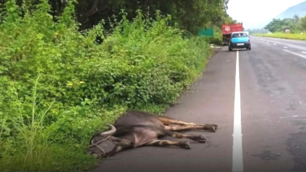 मुंबई- गोवा महामार्गावरील झाराप पत्रादेवी बायपास रस्त्यालगत चारा खात असलेल्या म्हैशीला अज्ञात वाहनाने धडक दिल्याने म्हैस जागीच गतप्राण झाली.ही घटना आज दुपारी १२ वाजण्याच्या सुमारास घडली . या अपघातात म्हैस मृत्युमुखी पडल्याने संबंधित शेतकऱ्यांचे फार मोठे नुकसान झाले आहे.