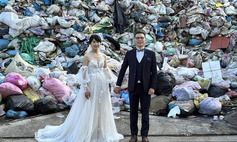 विवाहांच्या प्री-वेडिंग शूटसाठी जोडपी अनेकदा अत्यंत निसर्गरम्य ठिकाणांची निवड करतात. परंतु तैवानच्या नान्टौ काउंटीमध्ये एका जोडप्याने कचऱ्याच्या भल्यामोठ्या ढिगासमोर प्री-वेडिंग शूट करविले आहे. आइरिस सुएह आणि त्याची होणारी वधू इयान सिलोउ यांनी कचऱ्याच्या ढिगासमोर उभे राहून छायाचित्र करविले आहे. त्यांचे हे प्री-वेडिंग फोटोशूट आता सोशल मीडियावर चर्चेचा विषय ठरले आहे. या प्री-वेडिंग फोटोशूटचे काही जण कौतुक करत आहेत. तर काही जण या प्री-वेडिंग फोटोशूटला चुकीचे ठरवत आहेत.